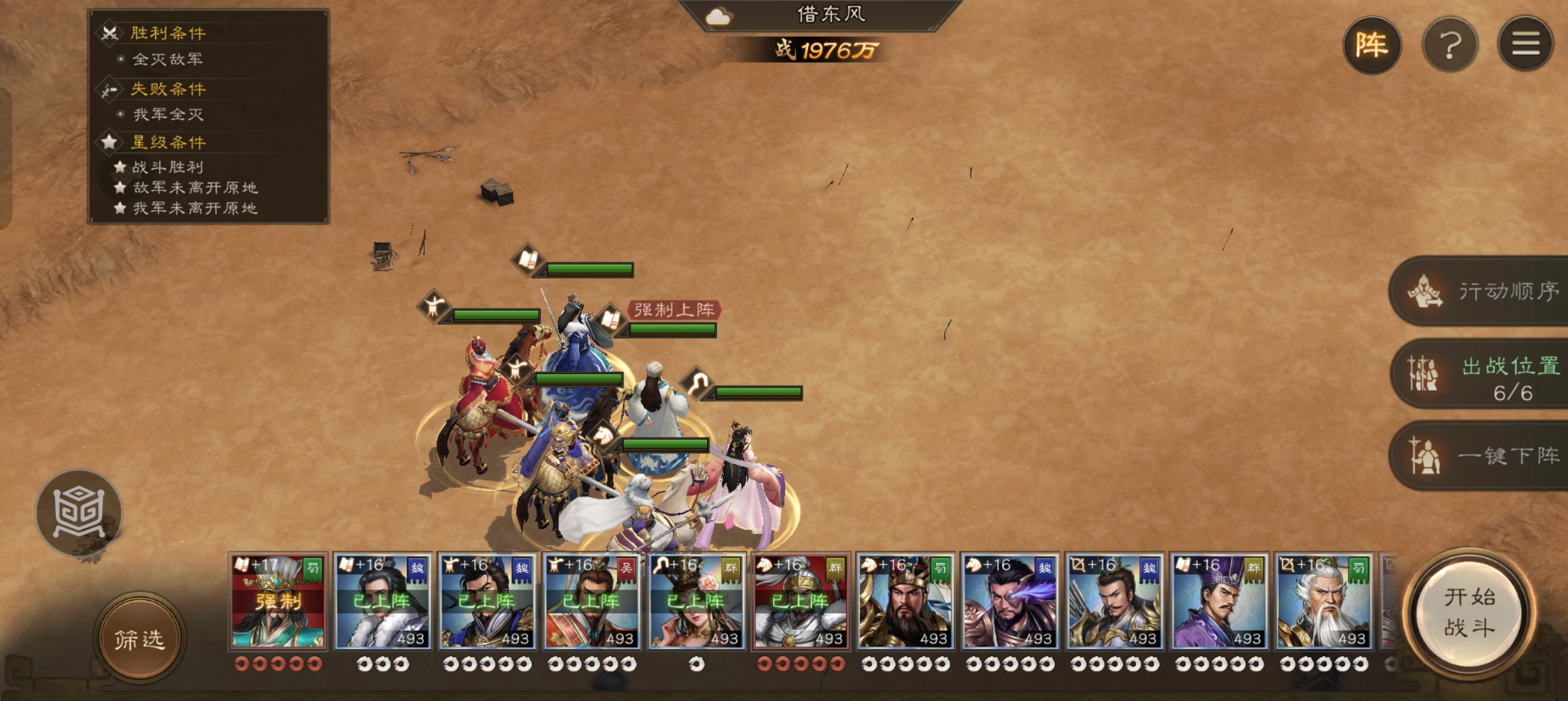 在这个试炼中,满星要求我们和敌方都不能移动。刚解锁的诸葛亮技能“借东风”并非全屏范围,因此我们需要采取两步走的策略。