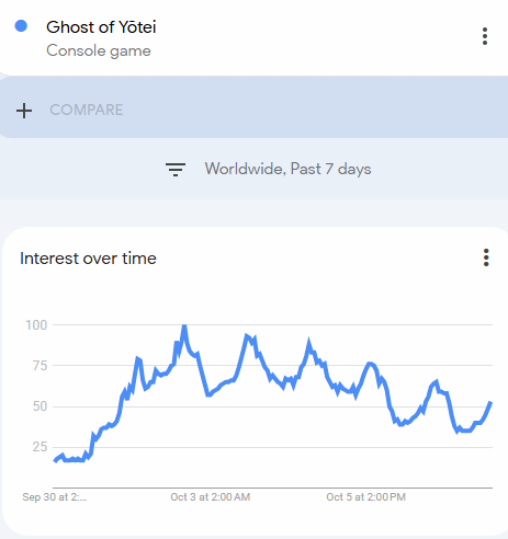 有玩家指出,游戏在Twitch上的观看人数从峰值的11.1万人同时在线观看,五天内骤降至不足1.3万人。这种急剧的下降无疑让人感到震惊。Google Trends的数据同样显示,即便是在发售周末这一新品最强势的时间段,搜索热度也急速下滑。