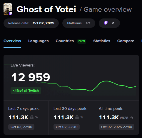 以下是最新的游戏运营数据,反映了《羊蹄山之魂》的市场表现: